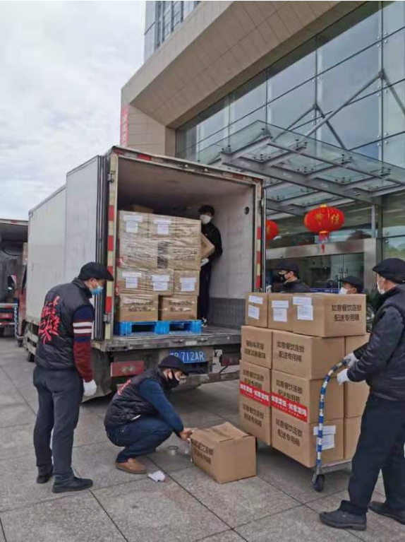 2月10日中午,總部坐落在蘇州高新區滸墅關鎮的企業——江蘇如意食品有限責任公司內繁忙一片,工作人員正忙著將260多只紙箱打包裝入廂式貨車。下午1時,兩輛廂式貨車駛入蘇州市公安局交警支隊,6名工作人員將紙箱搬下車,箱子上不僅貼著打包員的姓名、體溫、洗手消毒情況,還貼著梅干菜扣肉、醬汁排骨、骨頭湯等字樣的標簽。這是該企業在正式開工首日向蘇州市公安局交警支隊捐贈的13500份餐品,總價值245000元。
