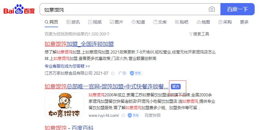 對于想要了解如意餛飩的創業者來說,自己想要找到如意餛飩官方人員,其實還是很簡單的,通過百度、搜狗、360等搜索就可以直接找到如意餛飩,可是底下的廣告似乎有些讓人云里霧里的,今天如意餛飩總部小編就給大家簡單的普及一下找如意餛飩官網的基本常識!