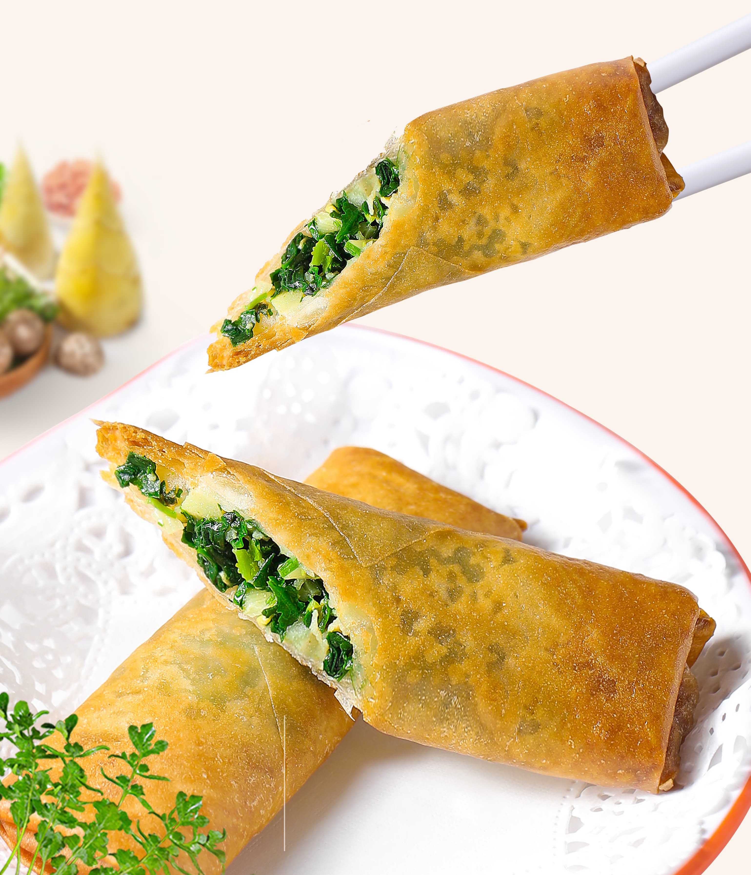 為了滿(mǎn)足消費(fèi)者日益豐富的需求,如意®餛飩是每?jī)蓚€(gè)月上一次新品,迭代產(chǎn)品。基于拳頭產(chǎn)品“餛飩”的基礎(chǔ),再搭配當(dāng)下市場(chǎng)流行的不同品類(lèi)。譬如在今年3月份,如意餛飩就圍繞“時(shí)令春菜“主題推出【薺菜八珍大餛飩】、【薺菜春卷】等新品。