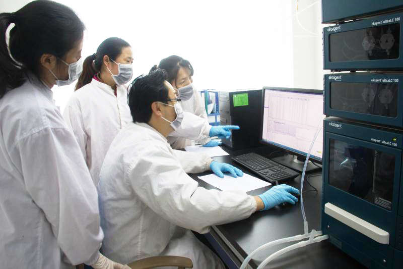 我們來到新希望六和的檢測中心。檢測中心包括高效液相色譜儀、氣相色譜儀、原子熒光光譜儀、無菌室、超凈工作臺等設(shè)備。對生產(chǎn)實(shí)行全線控制,檢測原料及成品中的藥殘、污染物等重要控制指標(biāo)。我們在現(xiàn)場檢測了出廠檢驗(yàn)要求的項(xiàng)目。