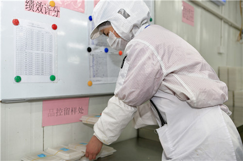 公司品控分為原料品控與現場品控。原料品控的職能是依據質量標準,對進廠原料進行檢驗,同時,對原料、半成品、成品進行化驗,保證投入生產的原料都合格。現場品控則需要對生產現場的環境、衛生、操作規程、生產工藝等不斷進行跟蹤監督,發現產品有異常現象及時解決并及時記錄和反饋。工作繁瑣而枯燥,需要極大的耐心與細心,但正因為他們日復一日的檢查與監督,才保證了每一份餛飩的安全誕生。
