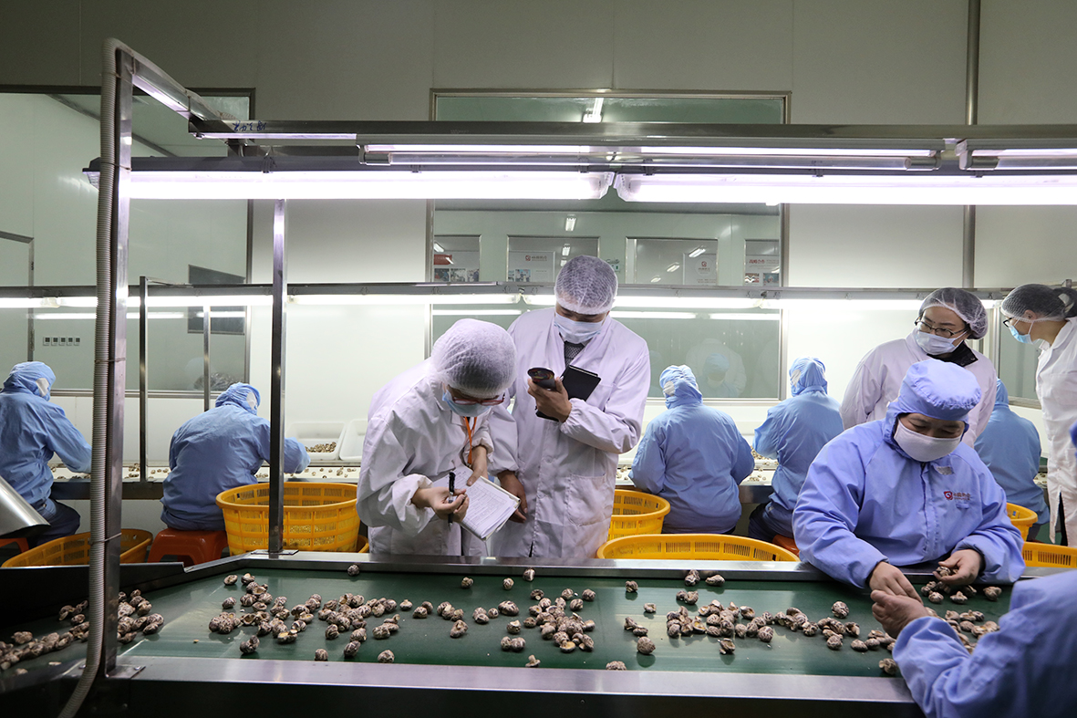 第五站我們來到人工初選車間。經(jīng)過機(jī)械刪選后,由人工對(duì)香菇進(jìn)行分級(jí)挑選,同時(shí)將不合格品挑選出來,合格的半成品按級(jí)別送入下一道工序。我們主要驗(yàn)證產(chǎn)品是否有異物,同時(shí)查看產(chǎn)品上是否留有薄膜、毛發(fā)等;