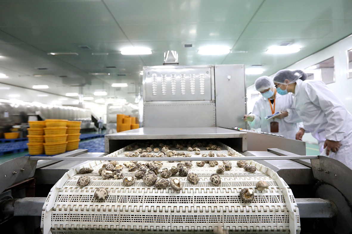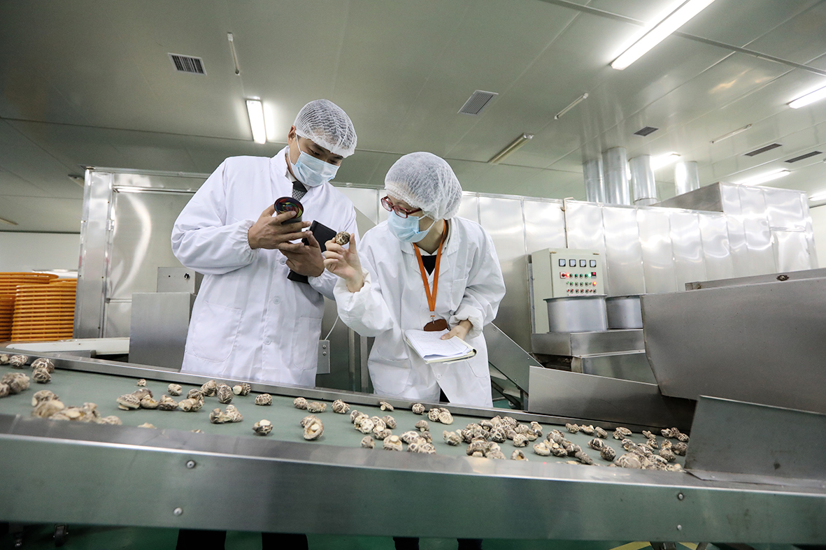 第九站微波殺菌。微波殺菌是通過微波和紫外線對(duì)產(chǎn)品中的有害微生物進(jìn)行殺滅,根據(jù)各種細(xì)菌屬性調(diào)節(jié)殺菌轉(zhuǎn)速和溫度。在此過程中,完成殺菌的同時(shí)進(jìn)行二次烘干。我們主要驗(yàn)證設(shè)備是否在有效狀態(tài),檢測(cè)板規(guī)格是否符合工藝設(shè)定要求,待產(chǎn)品冷卻后,還需要通過濕度檢測(cè)儀進(jìn)行檢測(cè),含水量在13%的香菇便可進(jìn)入包裝階段啦。