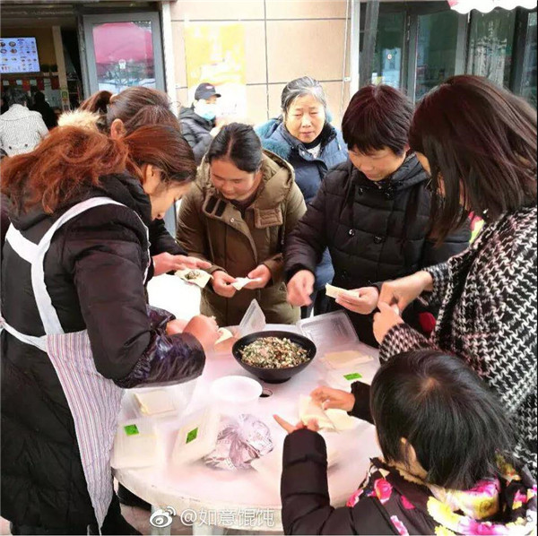 一起包餛飩,在這么多人手里傳來傳去的不止是筷子,更多的是分享與愛。