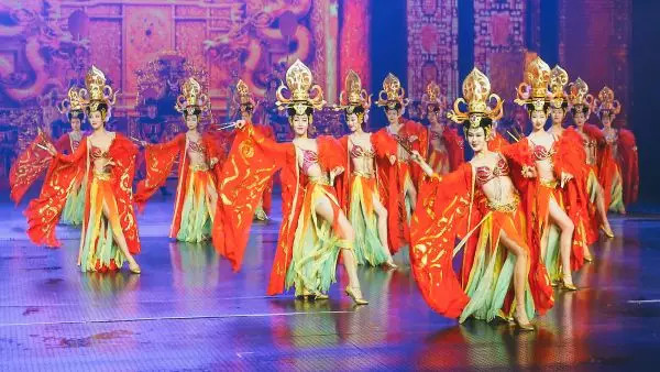 它以杭州的歷史典故和神話傳說為基礎,塑造了一場精彩的大型歌舞秀,將杭州的情與景再現于眼前。融合了雜技、舞蹈、走秀,用先進聲、光、電的科技手段和舞臺機械,以出其不意的呈現方式演繹了良渚古人的艱辛,宋皇宮的輝煌,岳家軍的慘烈,梁祝和白蛇許仙的千古絕唱,把絲綢、茶葉和煙雨江南表現得淋漓盡致。